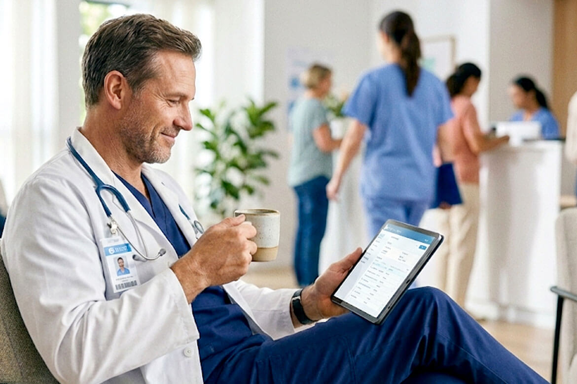 Estudos mostram que médicos gastam até 30% do seu tempo em tarefas não-clínicas. Isso é a receita para o Burnout (esgotamento profissional). O médico chega ao final do dia exausto, não por ter atendido muitos pacientes, mas por ter “apagado muitos incêndios” operacionais.